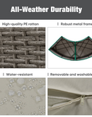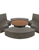 - [Innovative Table Design] The centerpiece of this rattan sofa set is a round, liftable table with a wooden tabletop that doubles as an extra seating option thanks to its included cushion. This multi-functional table can be lifted to suit your needs, whether you're serving refreshments, enjoying a meal, or needing a convenient place to rest your book. Its innovative design and functionality make it a standout feature, adding both style and practicality to your outdoor living space.
