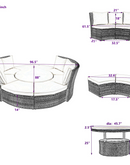 - [Dimensions] Overall: 96.5x88x32.6inch(LXWXH); Loveseat(without cushion): 61.5x21x32.6inch(LXWXH); Cushion Thickness: 3.5inch; Ottoman(without cushion): 32.6x17.5x14inch(LXWXH); Pillow: 21x18x7inch(LXWXT); Coffee Table: dia45.7XH14-25inch. For more size, please refer to size image. 5 boxes in total which may not come together. If you have any questions or concerns, please feel free to contact us.