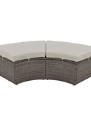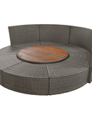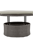 The centerpiece of this rattan sofa set is a round, liftable table with a wooden tabletop that doubles as an extra seating option thanks to its included cushion. This multi-functional table can be lifted to suit your needs.