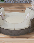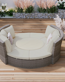 | Highlights | All-Weather PE Rattan // Metal Frame // 4 Loveseats // Round Liftable Table // Wood Tabletop // Multi-functional Table // Free Combination // Can Be A Sunbed // Washable Cushions&Pillows Cover // 15 Cushions&Pillows // Fixable Cushions // Adjustable Feet // 2 Colors Available |