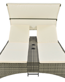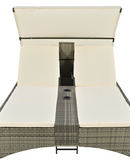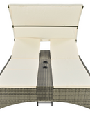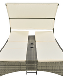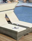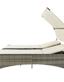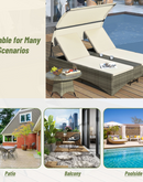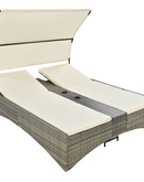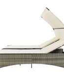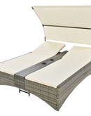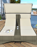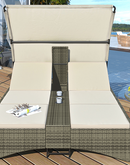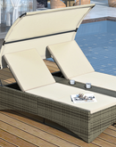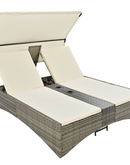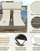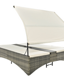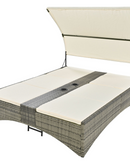 Patio Daybed Outdoor Daybed Outdoor Rattan Sun Lounger with Shelter Roof with Adjustable Backrest, Storage Box and 2 Cup Holders for Patio, Balcony, Poolside,Cream