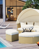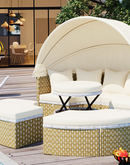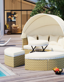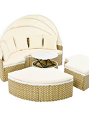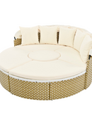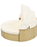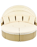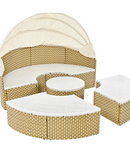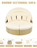 Patio Furniture Round Outdoor Sectional Sofa Set Rattan Daybed with Canopy, Beige