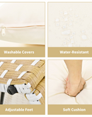 This daybed is meticulously designed to ensure maximum comfort, featuring five foam-filled pillows and cushions for you and your guests to sink into. The adjustable feet guarantee stability on any surface, enhancing your comfort. The convenience of washable cushion covers means that keeping your daybed looking fresh and vibrant is as simple as a quick wash, allowing you more time to relax and less time worrying about upkeep.