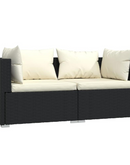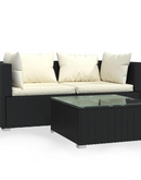 Patio Furniture Set 3 Piece with Cushions - Black Poly Rattan | Outdoor Lounge Set