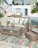 Elevate your outdoor living space with the Patio Furniture Set, a stunning 4 piece outdoor conversation set. Crafted with all-weather wicker, this sectional sofa with ottoman and cushions is designed to withstand the elements while providing exceptional comfort and style.