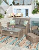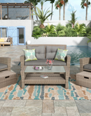 Patio Furniture Set, 4 Piece Outdoor Conversation Set All Weather Wicker Sectional Sofa with Ottoman and Cushions
