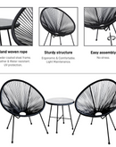 Elevate your outdoor lounging experience with the contemporary and comfortable Sassio 3 Piece Conversation Patio Set. This set includes two hand-woven rope chairs and one coffee table, all designed with a minimalistic touch and superior comfort in mind.