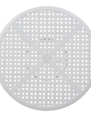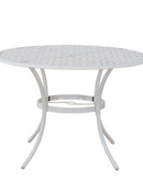 - The white powder-coated cast steel dining table features a lattice craft design and includes a hole for an umbrella