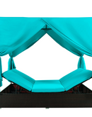 U_STYLE Outdoor Patio Wicker Sunbed Daybed with Cushions, Adjustable Seats