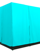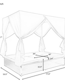 - Four-sided canopy and overhead curtains provide shade and privacy