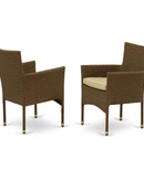 Wicker Patio Set Brown - Outdoor-Furniture Set with Acacia Wood Table Top and 6 Armchairs