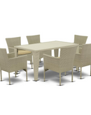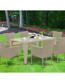 Elevate your outdoor dining experience with this exquisite Wicker Patio Set in Natural Linen. Featuring a sleek design and premium craftsmanship, this 7-piece set is perfect for intimate gatherings or charming family dinners in the fresh air.