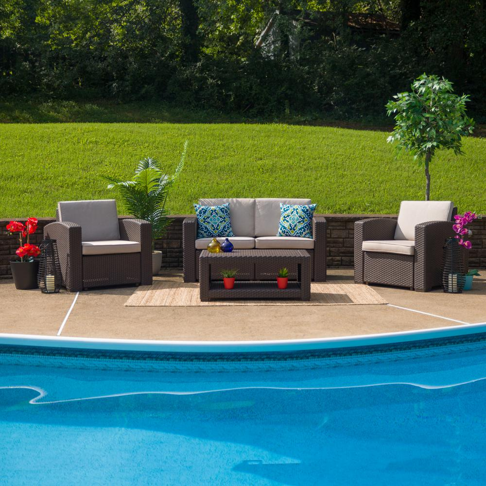 Create lasting memories with your loved ones on this beautiful dark gray outdoor seating ensemble. The durable resin frame replicates the look of rattan, adding a stylish touch to your outdoor space. With its deep seating and a...