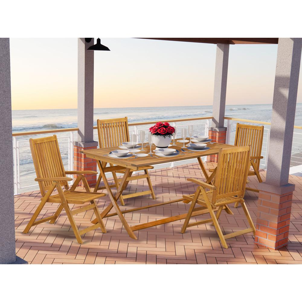 Add Style and Functionality to Your Outdoor SpaceElevate your outdoor dining experience with our 7 Piece Modern Folding Table Set. This stunning patio furniture set includes a beautiful wood table and 6 multi-position outdoor p...