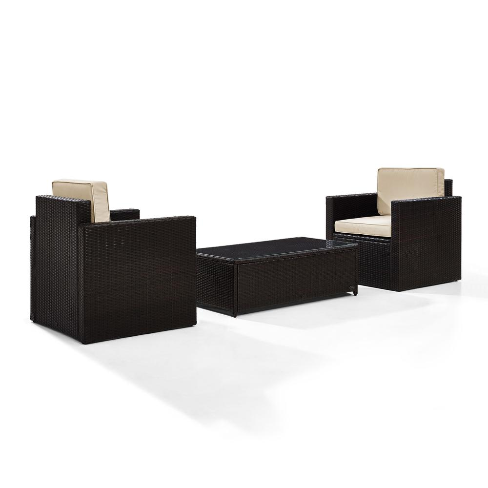 Transform your outdoor space into a cozy oasis with the Palm Harbor 3Pc Outdoor Wicker Chair Set. Crafted with all-weather resin wicker woven over durable steel frames, thi...