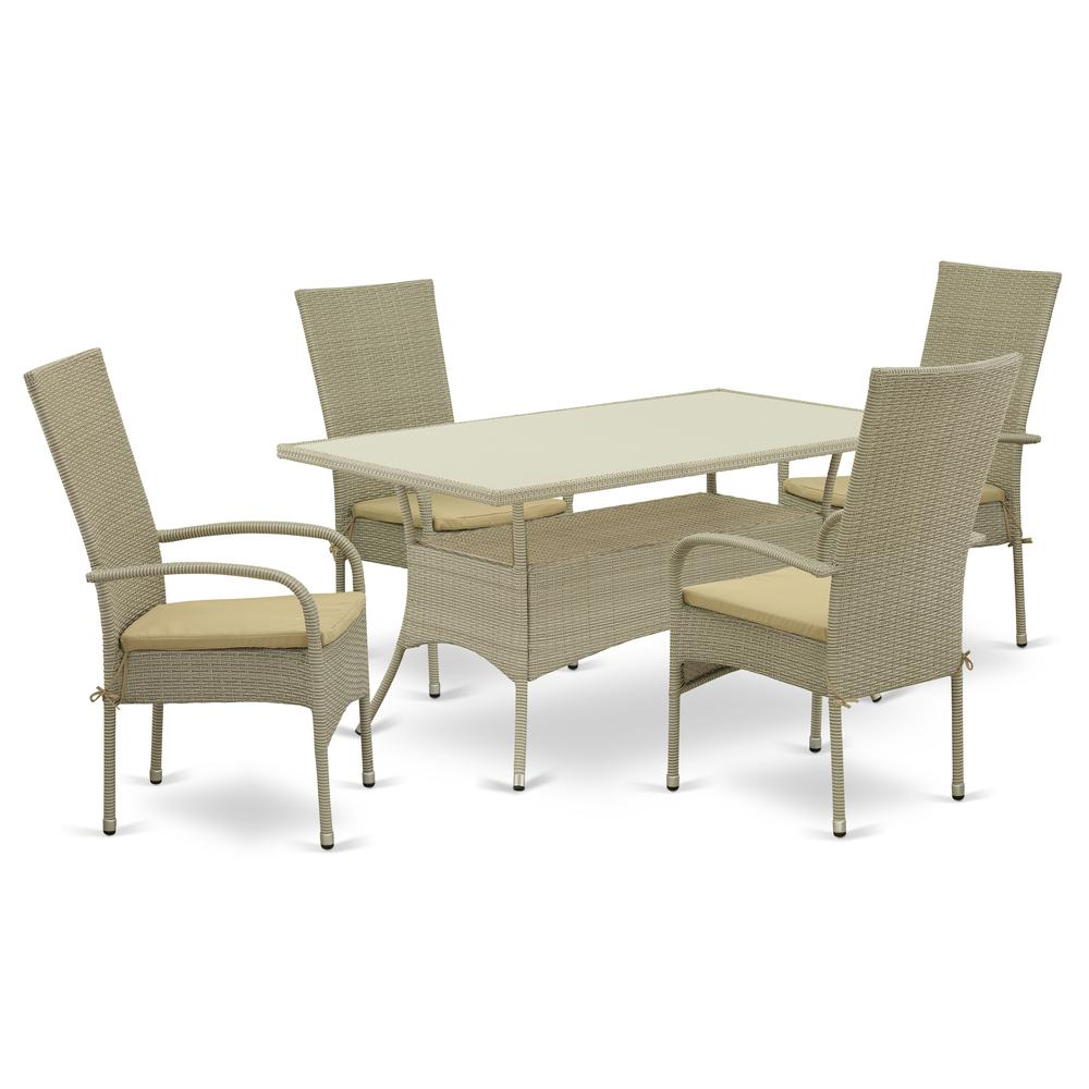 Furnish your patio dining area with this stylish and versatile Wicker Patio Set Natural Linen. Crafted with a Natural finish, this 5-piece outdoor fu...
