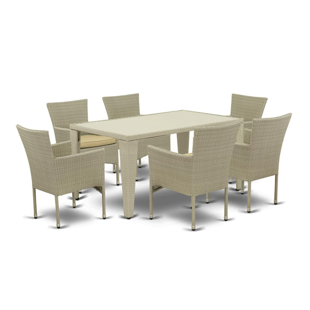 Elevate your outdoor dining experience with this exquisite Wicker Patio Set in Natural Linen. Featuring a sleek design and premium craftsmanship, this 7-piece set ...