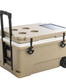 Elevate your outdoor experience with the 60-Quart Insulated Portable Rolling Ice Chest Solar Cooler with Wheels. Whether you're camping, tailgating, or having a BBQ in the backyard, this solar cooler is a must-have for keeping your drinks icy cold and your devices charged. Get yours today and enjoy the convenience and style of IceCove!