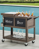 Sunjoy 80-Quart Brown Rolling Ice Chest Cooler Cart with Chalkboard -