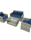 Terrazzo 4 Piece All-Weather Wicker Patio Seating Set With Cushions - Comfortable and Sturdy Outdoor Furniture