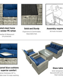 Add a touch of comfort and elegance to your outdoor space with the Terrazzo 4 Piece All-Weather Wicker Patio Seating Set. Whether you're hosting a small gathering or enjoying a peaceful moment by yourself, this seating set offers the perfect combination of style and comfort. The powder coated steel frame ensures durability, making it suitable for year-round use. The thick water-resistant cushions provide exceptional comfort, and with their removable covers, they are easy to clean. The included table features a 5mm glass top secured with suction cups, providing a convenient space for decorative items. Upgrade your patio furniture and create a cozy outdoor retreat with this high-quality seating set.