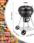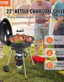 VEVOR 22" Kettle Charcoal Grill | Premium BBQ Grill with Wheels, Grate, Cover, and Thermometer